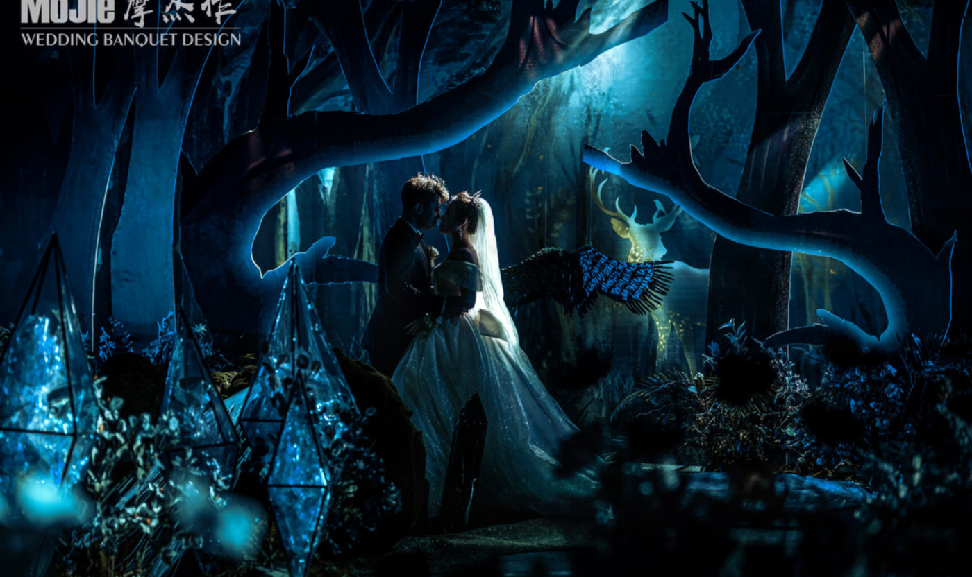 在爱的森林 精灵游走在夜空中 留下星星点点的轨迹 铸就了这个森林世界 带着神秘气息的森林场景,有种无法言喻的浪漫情怀,摩杰婚礼定制醒了童话故事书中的梦幻画面,为新人创造了属于他们的甜蜜童话。 大自然的怀抱营造出脱俗空灵的氛围,绿色的树木带来自由生动的气息,柔和的光温暖了大地,一切都那么美好![更多…]