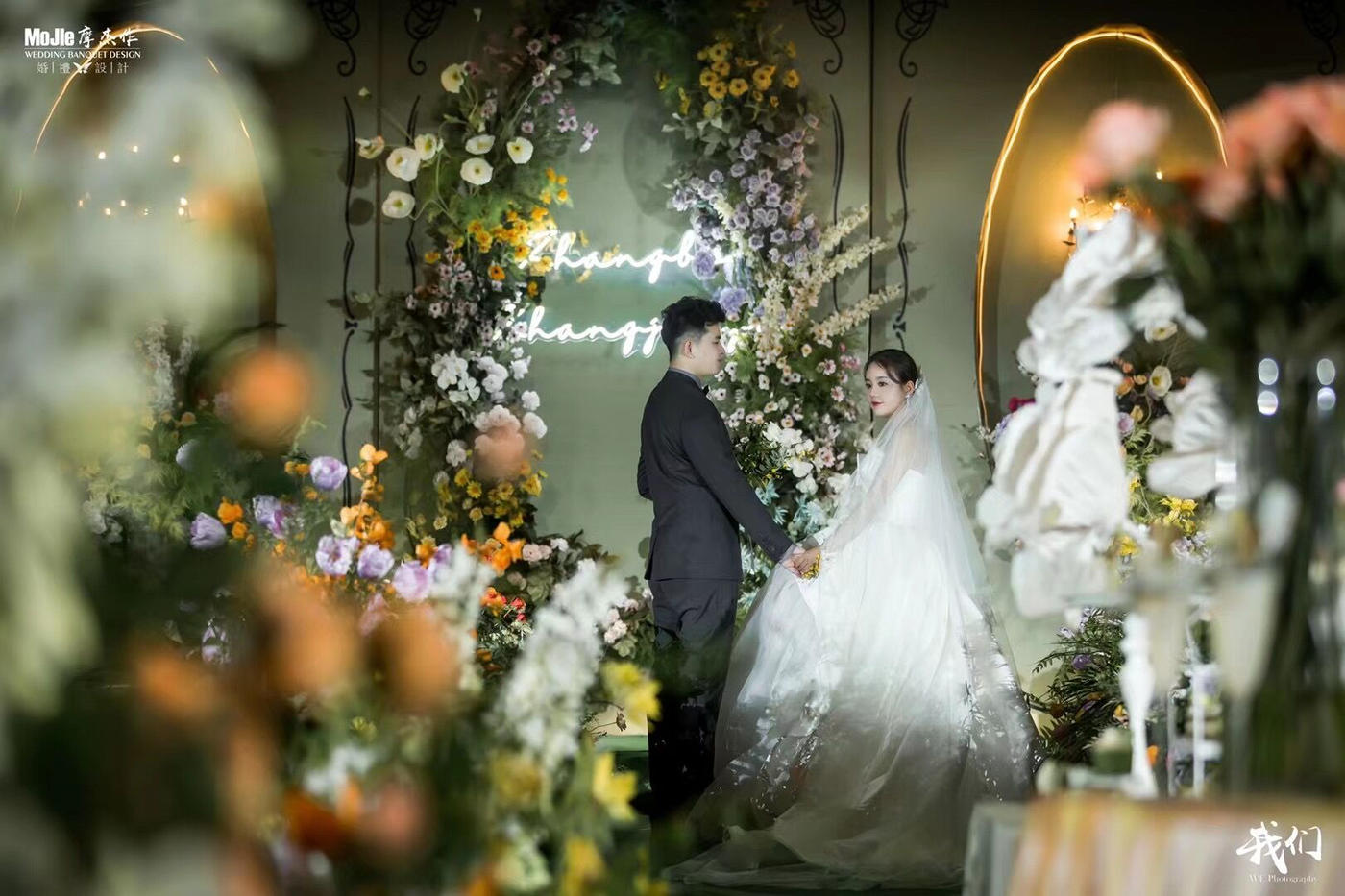 帐篷 编织网 萤火星光 挥舞着翅膀的精灵 繁星交织 万物舒展 现实与梦境重叠 指引着方向的流萤 是精灵们的献礼 每一片树叶 每一滴露水都在和你说 就算走遍整个世界 你也一直在身边 未来我们一起看日落和日出 一起续写美好 “Soulmate”相遇在魔法森林 那一刻 美好 没有终章 - THE FIRST - 关于新人丨两心之间的风景 初见 起初接触到新人给我的印象,新郎是一位绅士而含蓄的人,而新娘是天马行空,对婚礼充满向往和期待的姑娘。当她坐在我面前侃侃而谈时……能够感知到这种强烈的气场,似乎不完全像一位普通备婚的新娘,更像是一个婚礼策划师。 新娘告诉我她很艳羡《暮光之城》中森林的婚礼场景,野趣自然,清新独特。由于自己邀请的宾客人数偏多,无法完成户外公园丛林婚礼的心愿,所以想把森系风格婚礼搬到酒店里。 而新娘也表示,比起华丽的风情万种,她更希望婚礼是带有意境和灵动之感的。 喜欢森系婚礼的新人何不妨把婚礼直接搬到森林呢? 没有繁复的装饰,没有都市的喧嚣,使整个婚礼会场充满了神秘、独特的味道。 整场婚礼不仅拥有着浪漫而暗黑的氛围气息,还因为造景于自然森林内,而透露出了来自大自然的生气。 怎么形容新娘的婉丽呢? 就像误闯了一片未曾踏足的境域,遇见拥簇而来的小精灵,揽尽眉间的苍翠,溅起眸中的星河。 “希望灯光暗下来的时候能看到blingbling的阳光!” 在摩杰的设计理念中,极尽所能地满足新人的一切幻想,是我们打造一场定制型婚礼的核心目标。于是“阳光、暗黑系、森林”这三个关键词组成了这一场婚礼。 [更多…]
