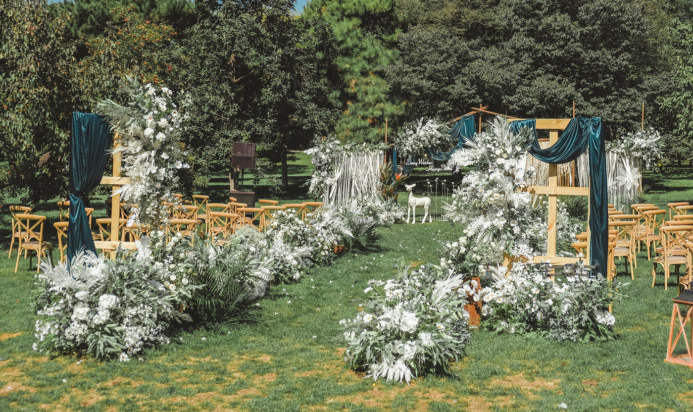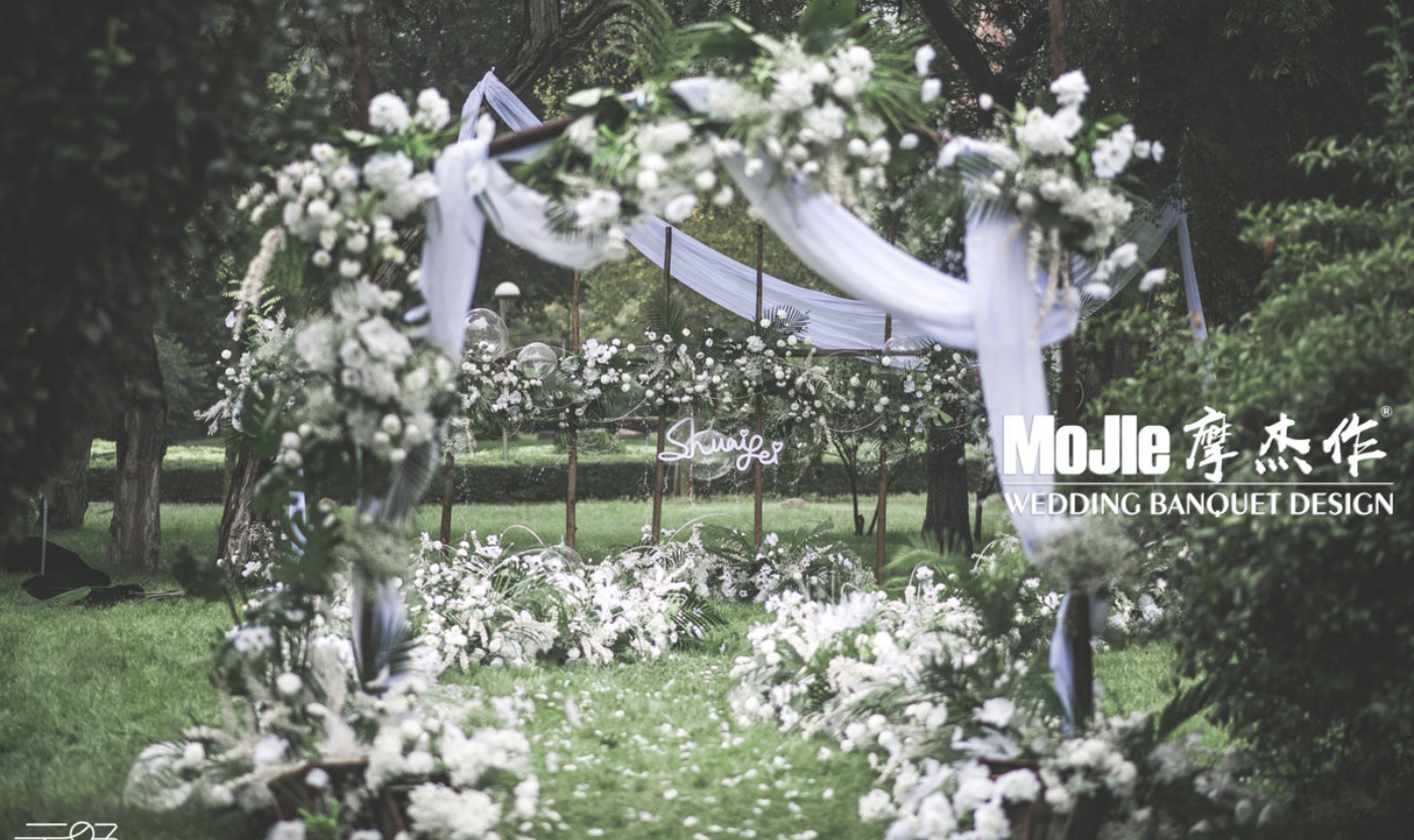 8月的太原除了热亦有微野凉风,林中有雾,晨露微雨,风过处,云卷云舒。夏天大约是儿时看过的漫天星辰,是闭上眼睛听过的风吹树叶的簌簌声,是不绝于耳的鸟叫与蝉鸣。 新娘想要一场轻松亲切,却又仪式感十足的简约西式户外婚礼,所以有了这场如绿野仙踪般曼妙微婉的视觉呈现。 美感。婚礼时突逢下雨,但依旧掩盖不住新人的喜悦,枝叶在微风中摇曳,雨水在透明的伞面上汇集成水珠,缓缓滴落,浪漫唯美。 雨天的波波球,亚克力,石榴石与水雾融为一体,让现场氛围更浓,增添了婚礼的情调。新娘捧着捧花,走在铺满花瓣的草地上,犹如精灵般面带娇羞,走向静候精灵到来的新郎。 你可知年少时我做过一个梦,在纯净的自然景象里,梦中的人牵着穿着白纱的我的手。随风飘扬的白纱,对切的纯白花簇,处处显露着纯净纯粹。 婚礼上有你我朋友的笑颜和祝福,嬉笑和歌唱,他们笑看你我幸福拥吻,是你我今日最好的见证。[更多…]