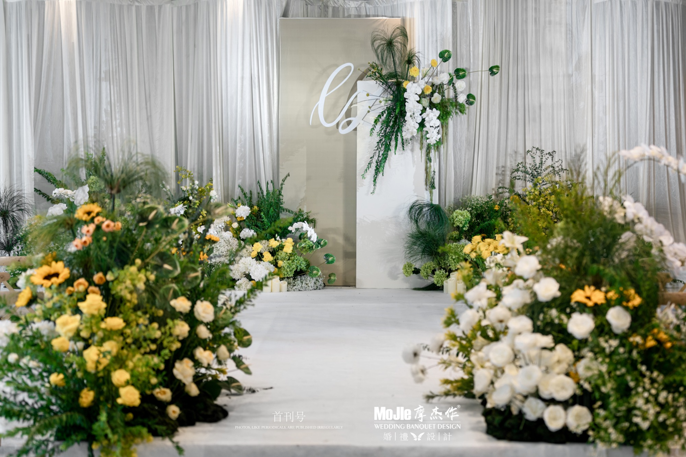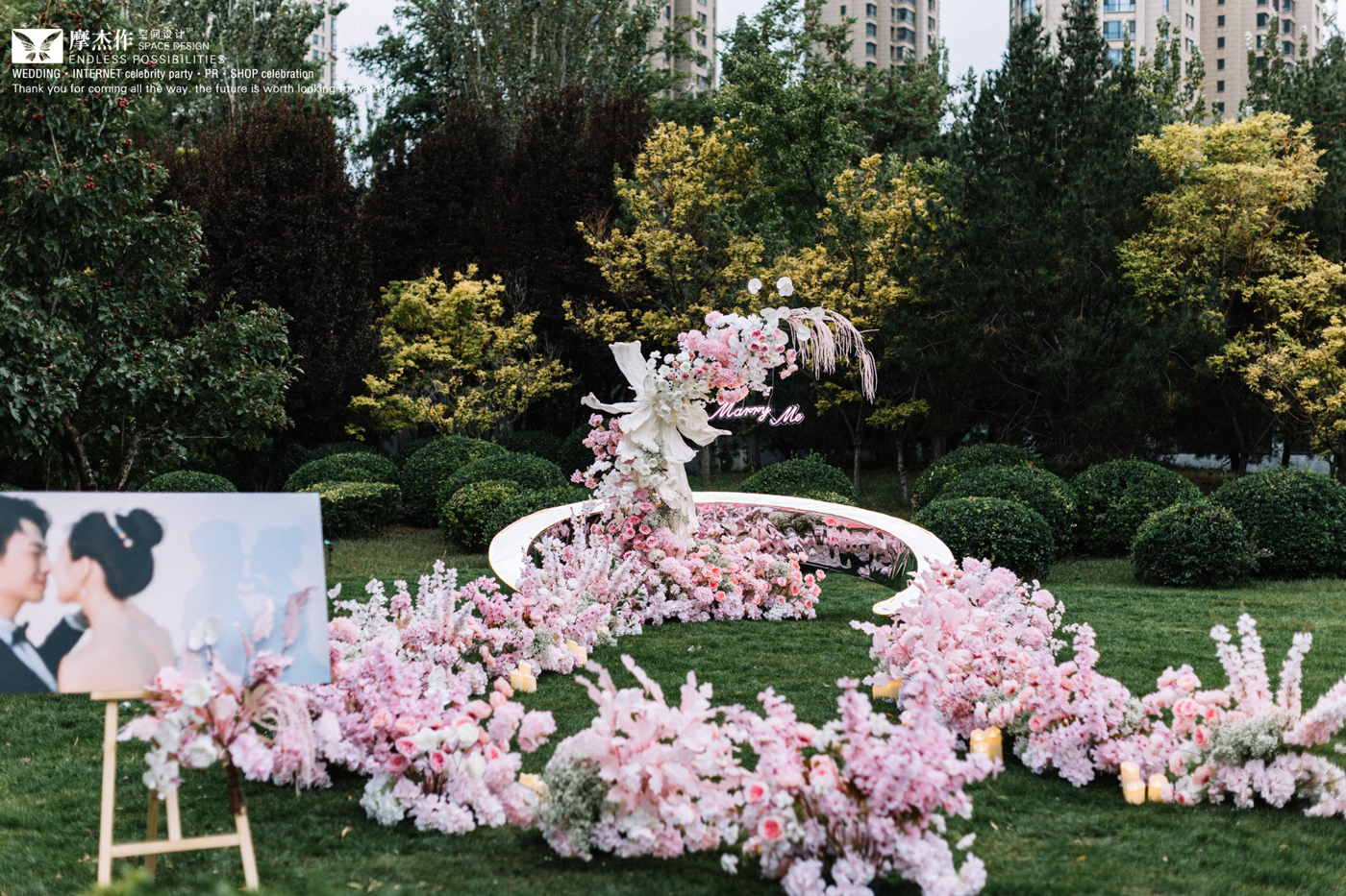 顶部,轻轻浅浅的粉色布幔,婉转流畅,不张不扬,勾勒了细腻的浪漫;地面,温柔的浅色系花艺与之呼应,只为营造一个真实自然又感动的氛围,呈现一场专属于二人的婚礼。[更多…]